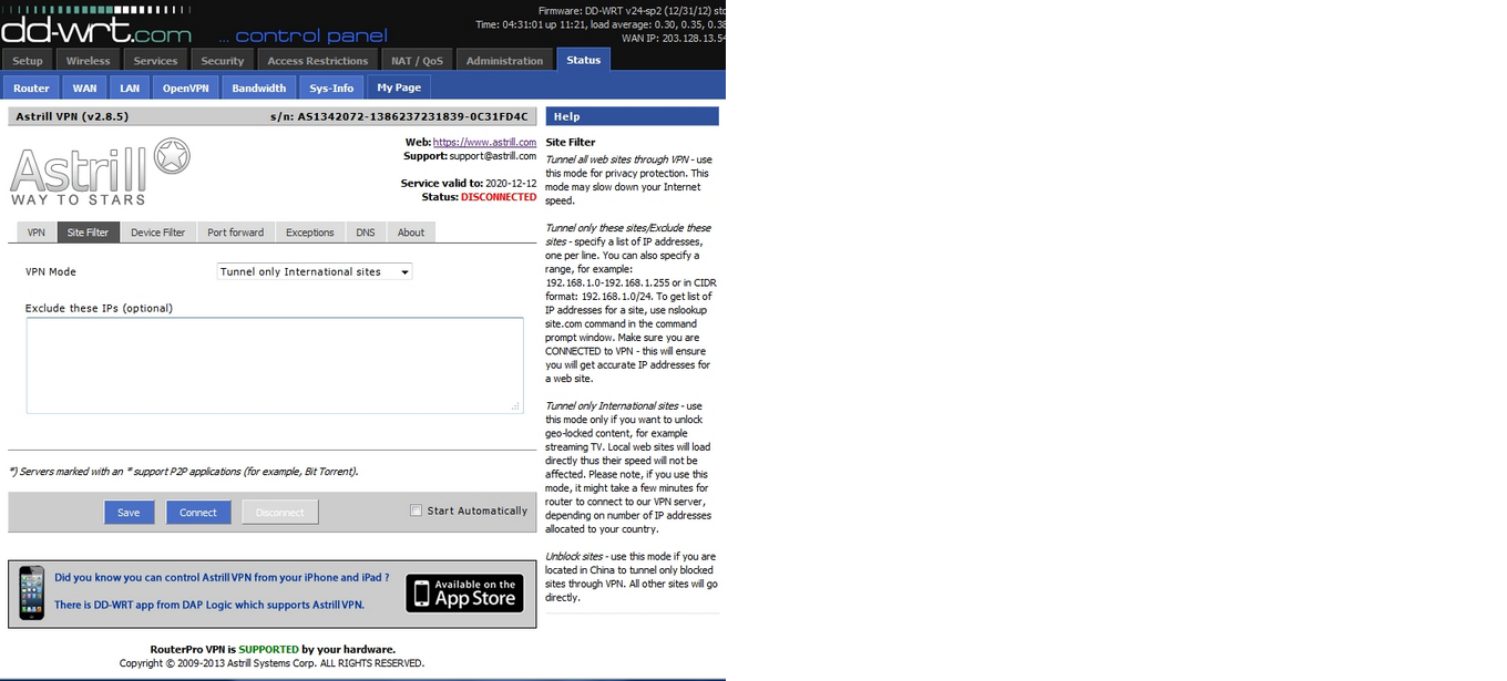 Astrill Router Applet:Site Filter