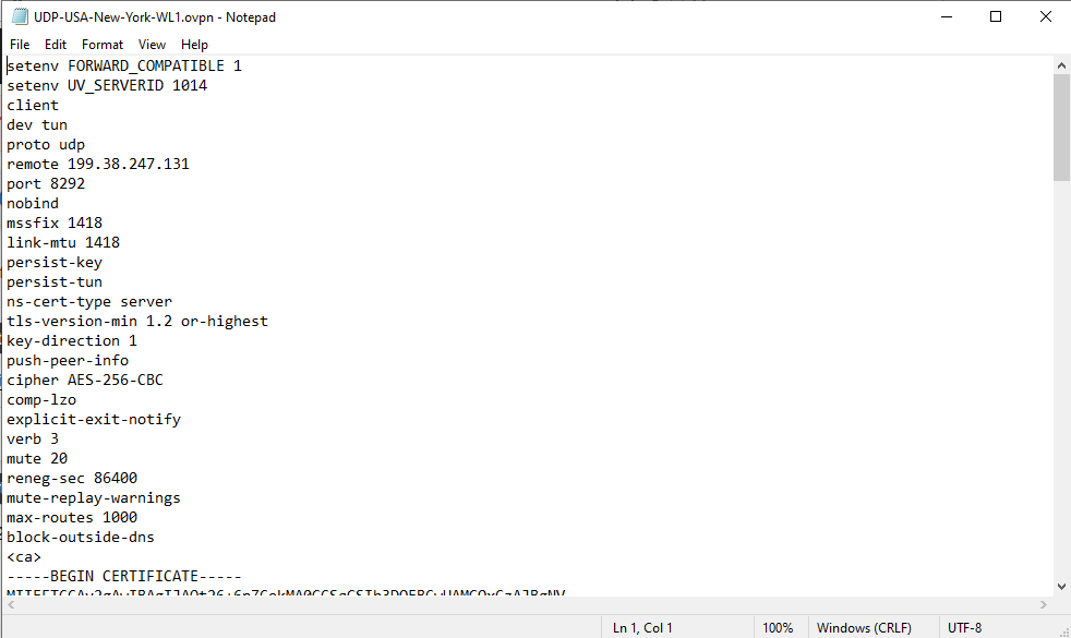 Open that OpenVPN .conf file in notepad which you downloaded on step 1.