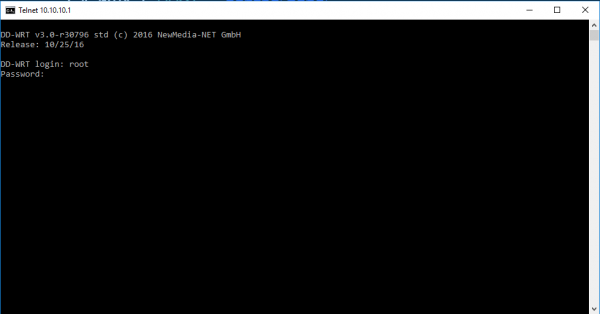 Open CMD, type following command and hit enter: telnet 10.10.10.1